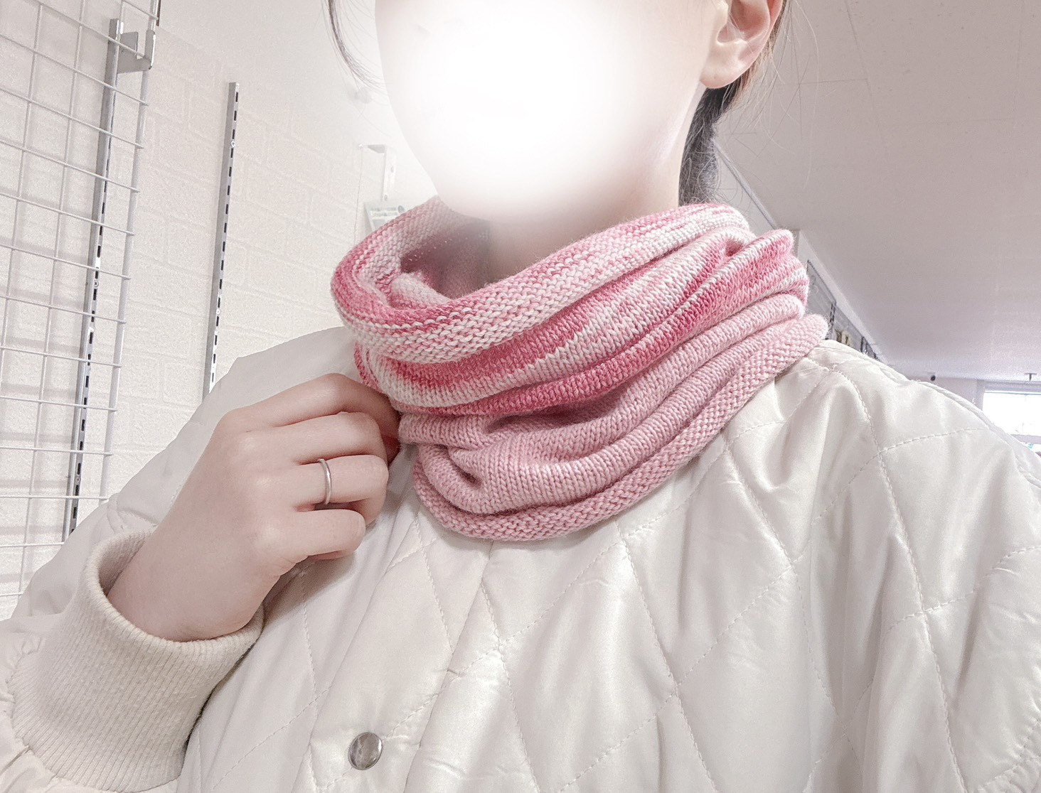 こちらのスヌードは「コットン混紡」で作りました
