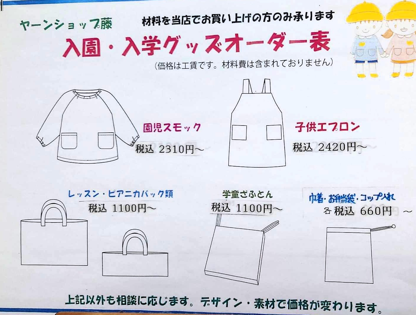新入学のグッズのオーダーを受け付けております